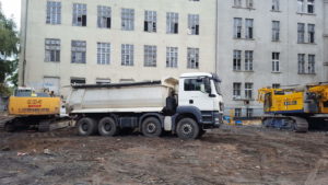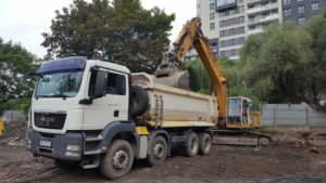 Systematycznie dbamy o czystość na drogach dojazdowych do budowy.